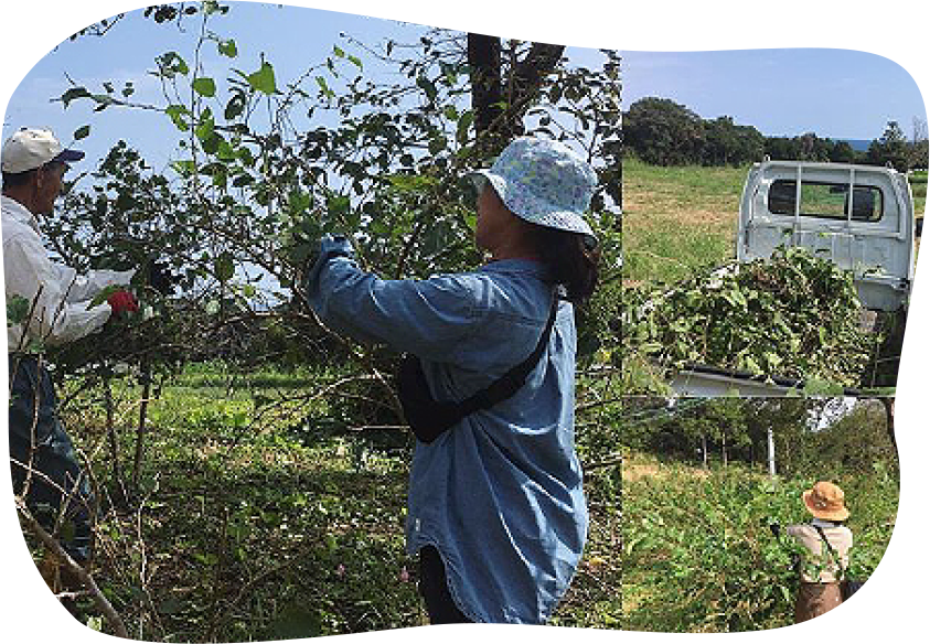 草引きなどできることをできる時にする10代から80代の女性たち(農園女子)です。